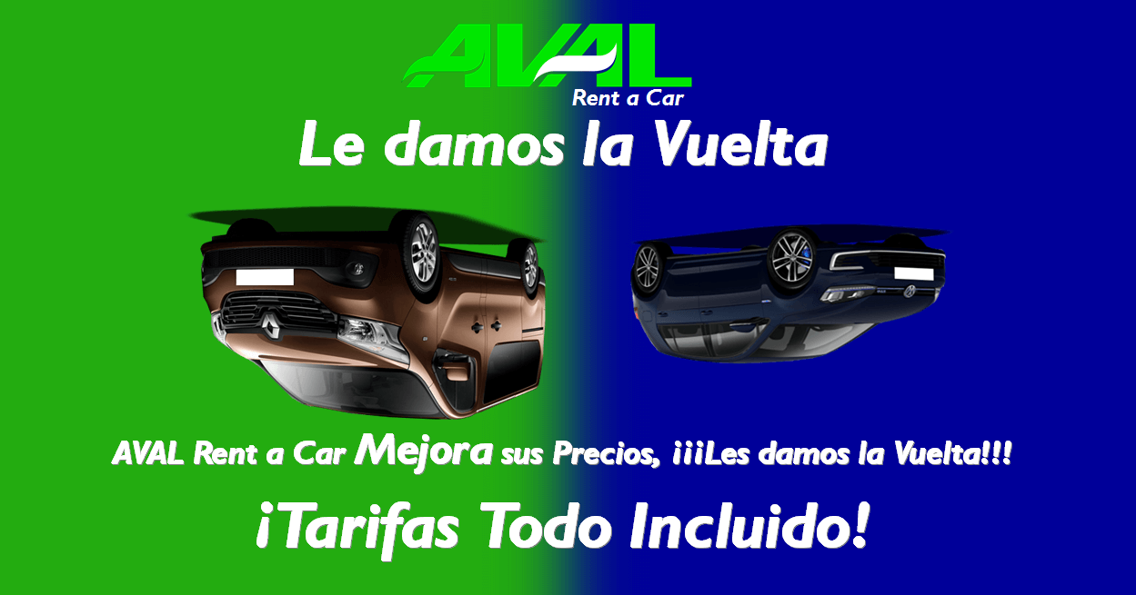 AVAL Rent a Car pone a su disposición sus Nuevas Tarifas, las cuales Incluyen Seguros a Todo Riesgo, PAI, CDW y kilometros incluidos, dependiendo del tipo de Vehículo.
