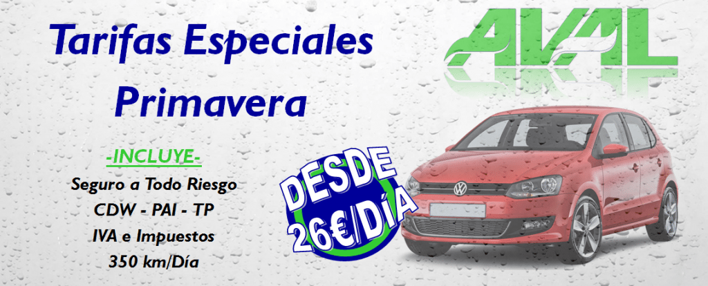 En AVAL Rent a Car ponemos a su disposición tarifas especiales para la temporada de Primavera, por lo que si usted necesita alquilar un Coche para un mínimo de 15 días y quiere estar seguro de las condiciones de su alquiler, está en el lugar adecuado.